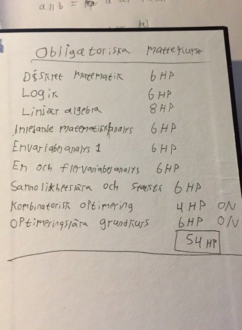 Hej, jag är nyfiken på vad ni som har läst följande kurser tycker om svårighetsgraderna. Vilken kurs verkade mer eller mindre svår jämfört med resterande kurser? =)