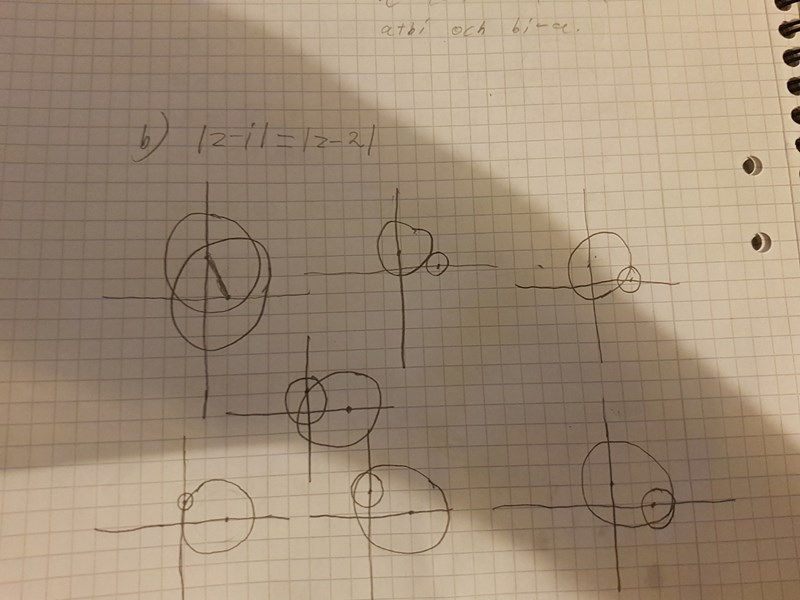Från matteboken där en av frågorna är som: abs(z-i)=abs(z-2).