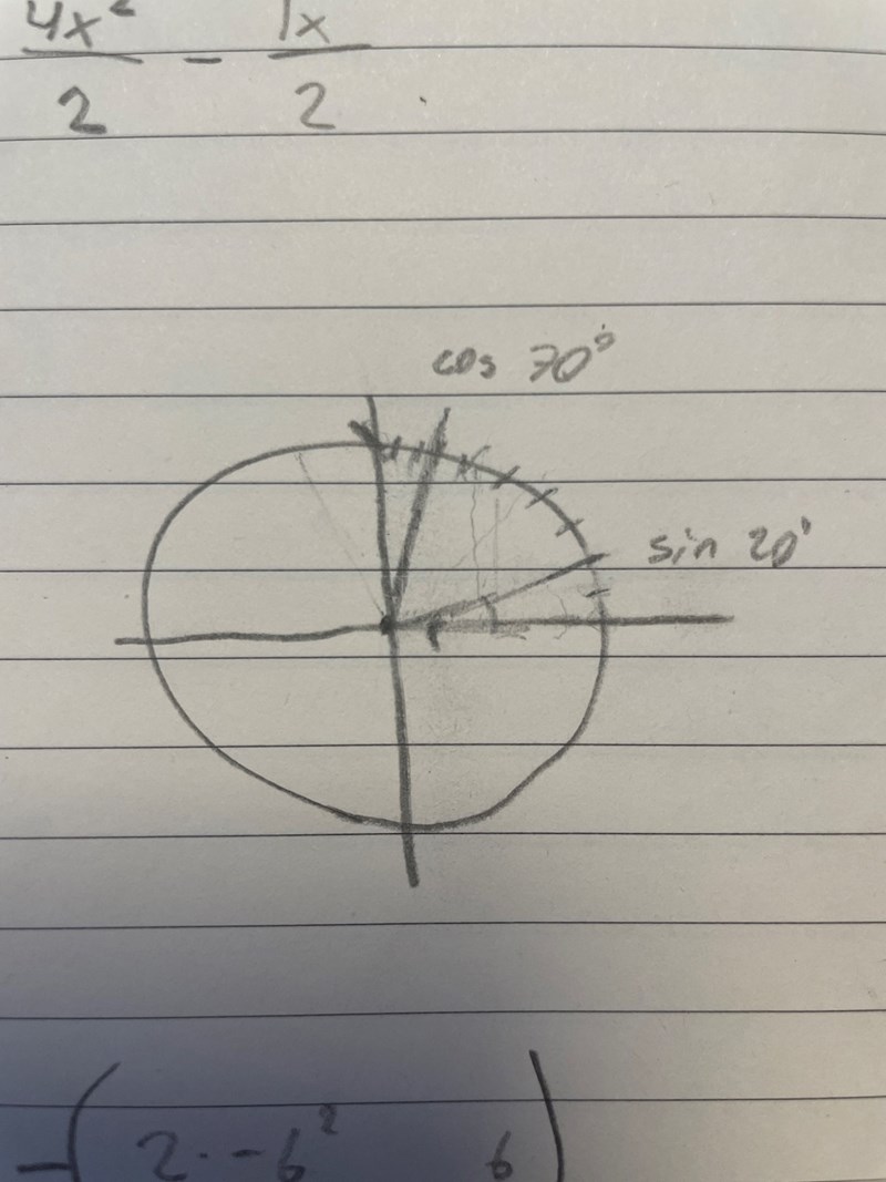 Åskådliggör i enhetscirkeln att sin 20°=cos70°