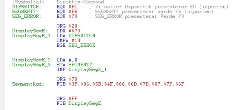 Programmeraren skrev:Ser ut som du branchar (hoppar) till SEG_ERROR men då lär programmet krascha, den ska ju hoppa till kod som lagrar SEG_ERROR i SEGMENT7