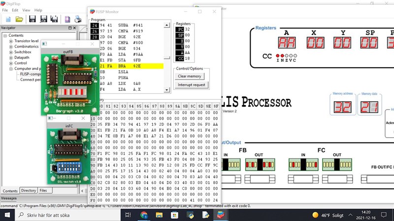 Hej, vi har en 8 bitars funktion där vi kan trycka in värden i binär form (tog inte med bilden på den men jag kan lägga in värdena via den).