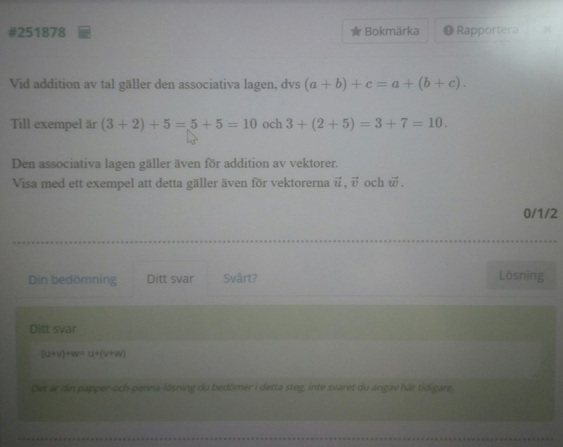 Tror att exempel betyder att du ska hitta på egna u,v och w, med siffror, och räkna efter att det faktiskt blir samma svar.