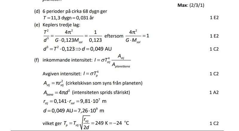 I b uppgiften är jag med på hur man löser ut avståndet och periodtiden så som de gör. Men jag är ej med på att (4*pi^2) / (G * M) är 1? Hur får de fram det? Vet gravitationskonstanten men förstår ej vilket värde på solens massa som de tog? Jag tänkte att det var 1,99*10^30kg som jag hittar i min formebok, men sätter jag in detta i uttrycket blir det ej 1? Och sedan förstår jag ej varför de räknar periodtiden i år för att sedan få det till Au? Varför ska man ej göra om den till sekunder? Tacksam för all hjälp.