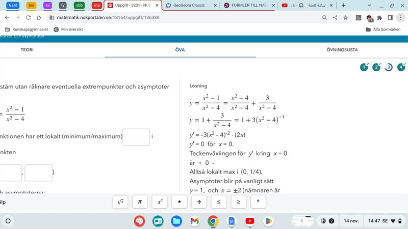 Täljaren är x2–1 +0 som är x2–1 + (4 – 4) = x2 – 1 +4 –4 = x2 – 4 + (–1+4)