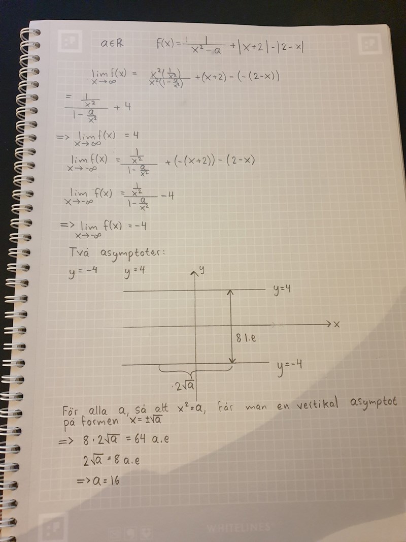 Jag får det till att det finns två asymptoter (med värden) oavsett a.
