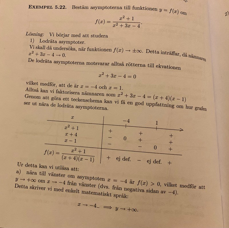 Juste! Men hur ska man då gå till väga för att veta att det som får när man sätter nämnaren =0 är verkligen en asymptot?