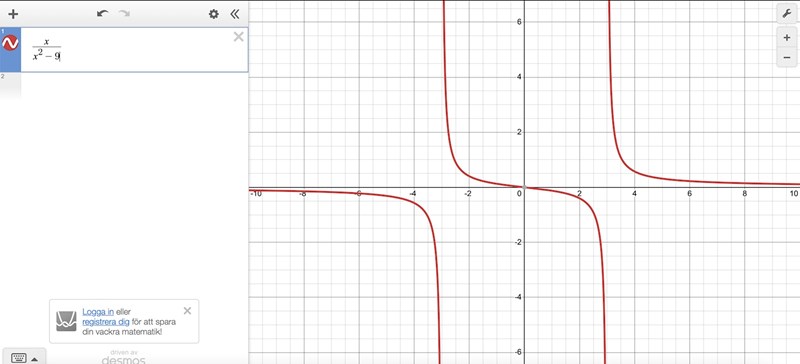 Jag får asymtoterna x=3, x=-3 och y=0. Vad ska den linjen vara?