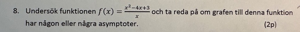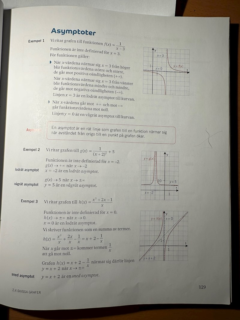 Det finns även en sned asymptot, har ni kommit in på detta i kursen ännu?
