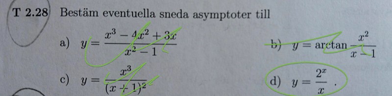 Det som görs här är ju att man letar efter sneda asymptoter ax+bax+b. Finns det några sådana?