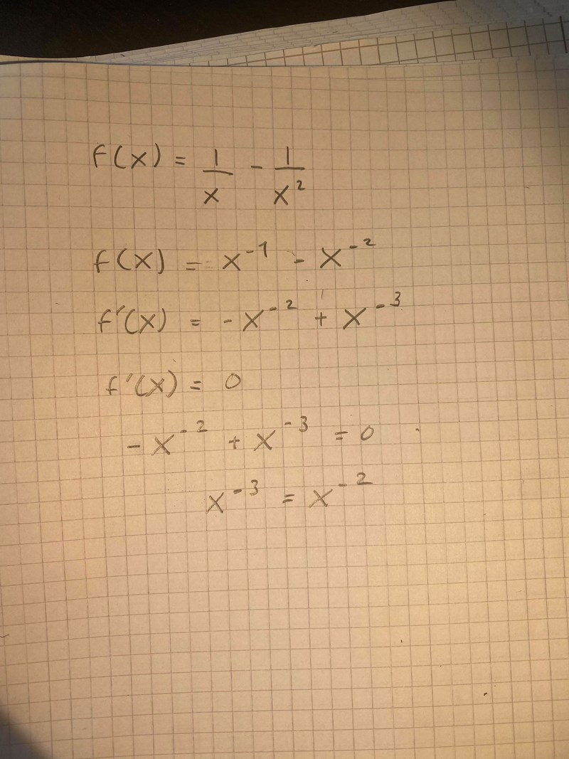 Sedan hittar du ett nollställe för derivatan och kan avgöra om det motsvarar max eller min.