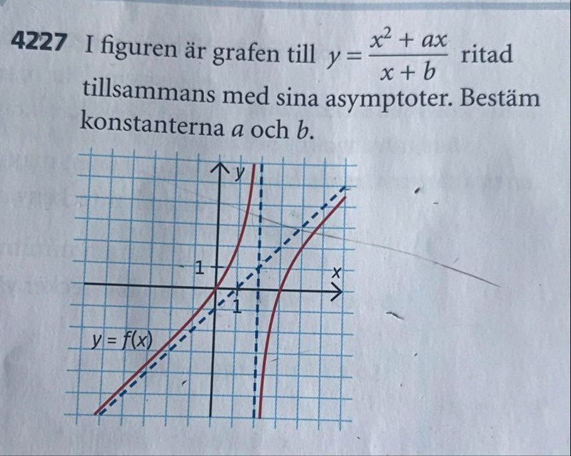 Yes nu hänger jag med på det, så jag får y= x+ a, vad ska jag sätta in som y och x är det grafen funktioner eller den sneda asymptoten?