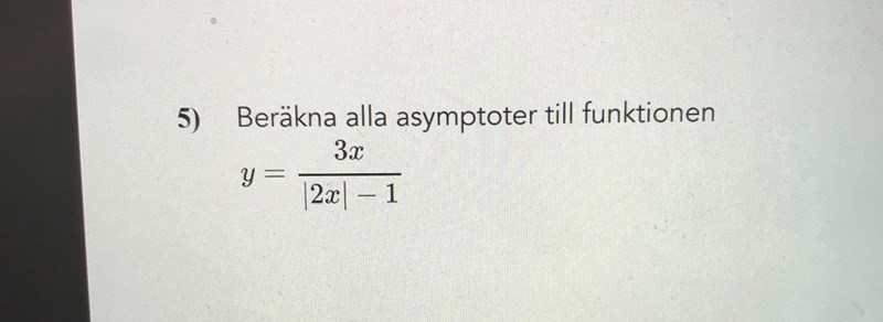 Behöver hjälp med denna uppgiften. Tänker att x = 0,5 och x = -0,5 borde vara asymptoter men det stämmer inte.