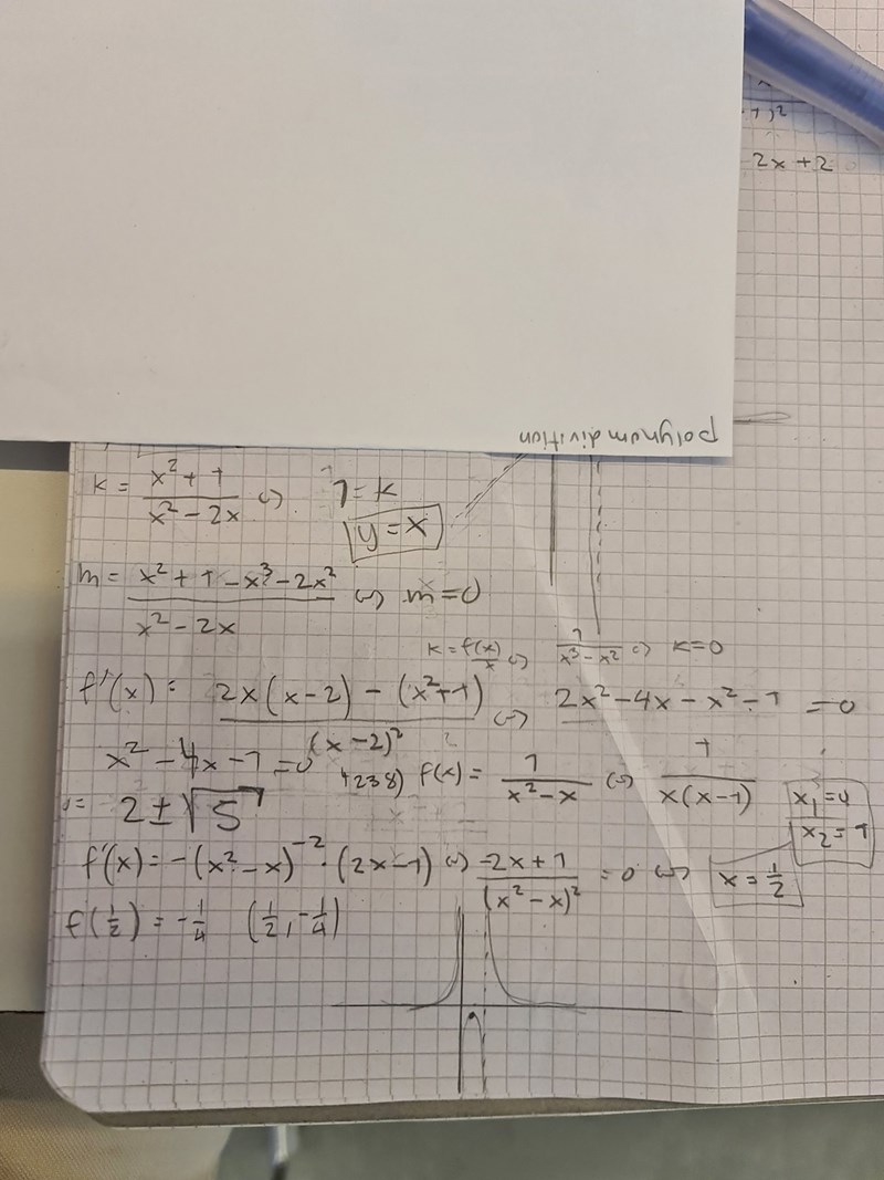 Okej måste man då testa ett tal från vänster och ett tal från höger och vänster som är super nära för varje gränsvärde som i denna uppgiften är x ej def för x=2 och nu hjälpte de med maxi punkten som säger att det måste vara mot + på både x=2 och x=0. Hm jag tror jag fick en lite bättre förståelse tack för snabb svar!