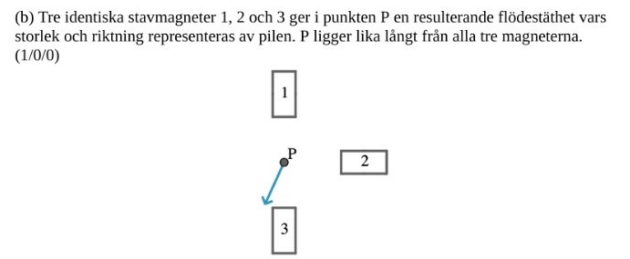 Nja, du har inte ritat för punkten P som ligger på axeln av dessa tre stavmagneter.