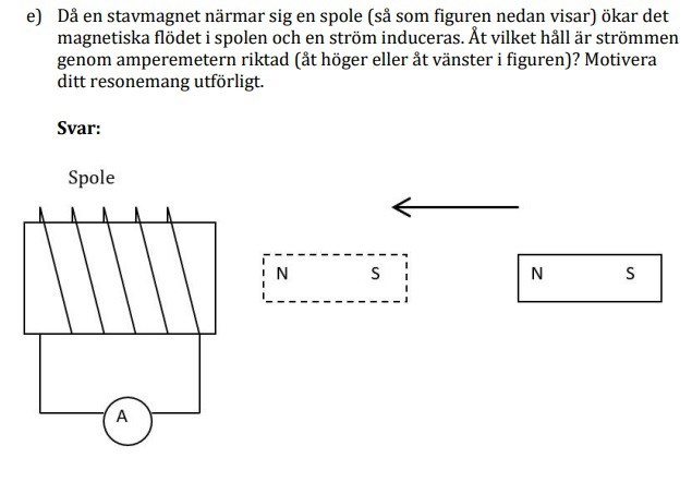 För jag  tror att strömriktningen borde vara riktade till höger i fuguren då enligt Lenz lag har strömmen en riktning som ska motverka orsaken till den inducerade strömmen.