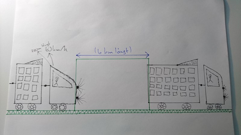 smaragdalena skrev :Hur längt är det från nosen på det vänstra tåget till nosen på det högra?