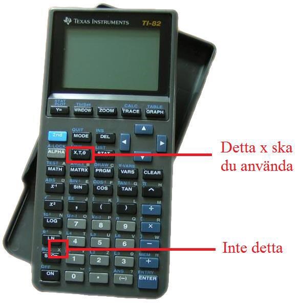 Vilket X man använder struntar miniräknaren också i. Man får exakt samma resultat genom att klicka på X,T,θ-knappen som genom att trycka på ALPHA och STO➔.