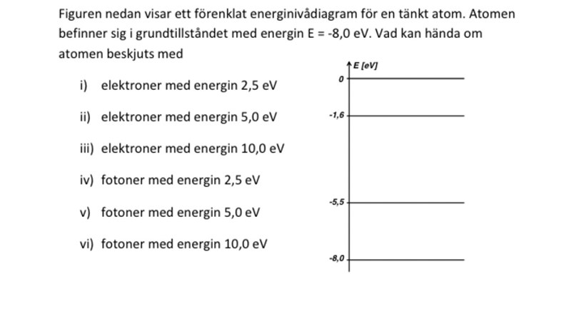 i) Om atomen beskjuts med 2.5 ev blir det inte då