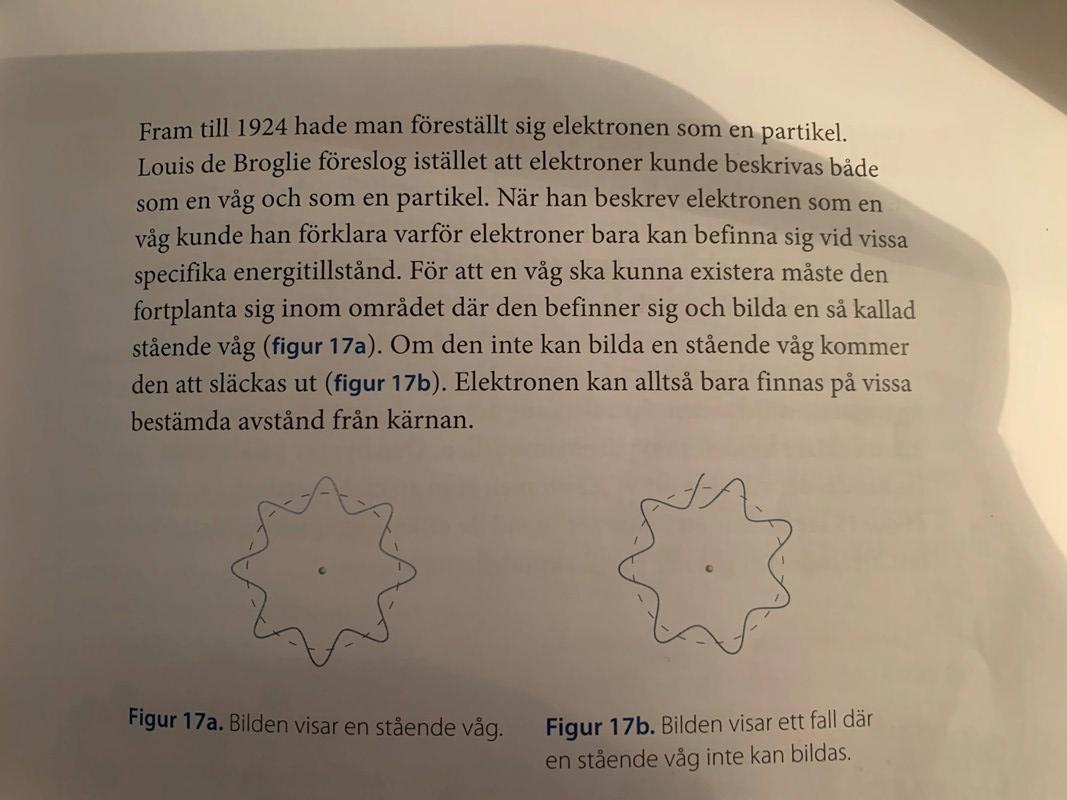 Niels Bohr hittade på en atommodell, som kan förklara en hel del kemiska fenomen, men inte alla (t ex förutsäger Bohrs modell att det skulle vara en dubbelbindning i en syrgasmolekyl, men det stämmer inte med de egenskaper som syrgasmolekyl har i verkligheten). För att kunna förklara detta och en massa andra egenskaper, behöver man sådant som fysiker som t ex de Broglie och Schrödinger hittade på, och att förstå detta behöver man läsa kemi och fysik på universitetsnivå - det är möjligt att man fortfarande läser lite om de Broglie i gymnasiefysiken nuförtiden också, vi läste lite på min tid, men Schrödinger tror jag inte att jag hörde talas om förrän på Chalmers.