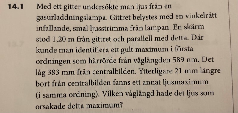 Jag gick 589 nm, svaret ska vara 618 nm. Förstår inte vad jag gjorde fel.