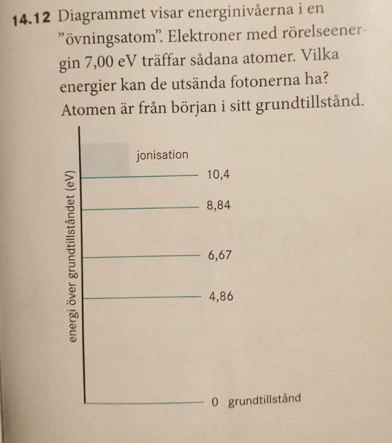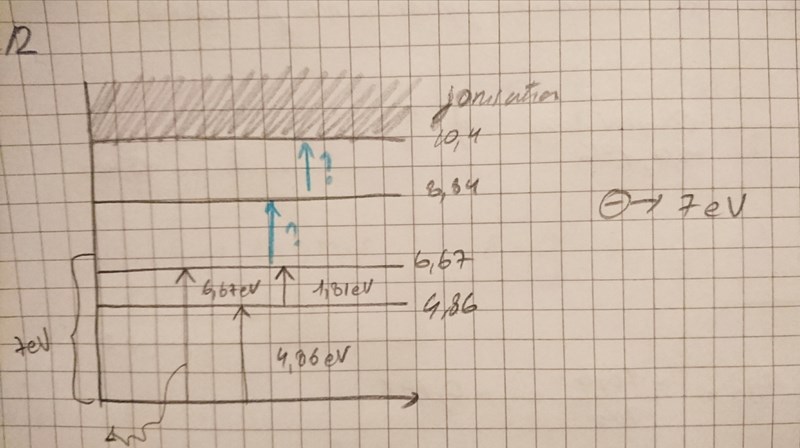 Men fall 2 då. Först ramlar energi från 6,67 till 4,86 och det kan sändas en foton med 1,81 eV, och sen 4,86 eV?
