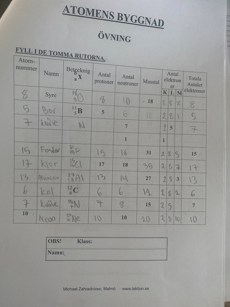 När det gäller kväve kan man veta att atomen har 7 protoner eftersom dess atomnummer är 7.