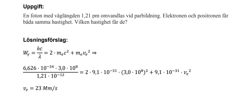 Lösningsförslaget är inte så bra eftersom det handlar om så små skillnader. Då ska man inte avrunda ljusets hastighet och elektronens massa som de gör där.