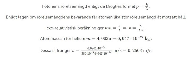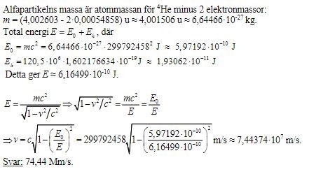 Teraeagle skrev:Atommassan är den genomsnittliga massan hos atomen till ett grundämne (atomkärna och elektroner). I ditt första exempel handlar uppgiften om en alfapartikel, vilket är samma sak som atomkärnan till isotopen helium-4. Det är alltså en atomkärna, utan elektroner. I ditt andra exempel handlar uppgiften om en heliumatom, alltså en hel atom med både kärna och elektroner.
