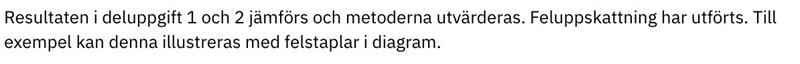 Jag är dock inte säker vad mer man behöver nämna för att uppnå det högre betyget, hur man gör feluppskattning, eller illustrerar med felstaplar i diagram.