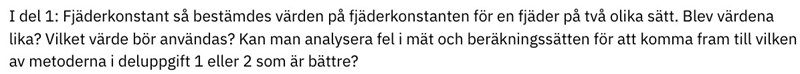 Så, jag har utfört en laboration där jag har behövt bestämma fjäderkonstanten, men jag har gjort det på två olika sätt: