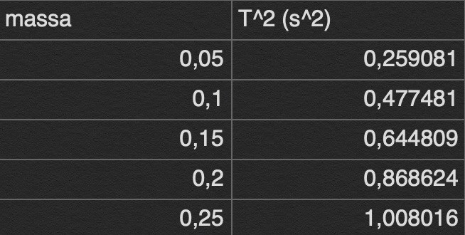 Jag hade iförsig en kolumn där jag hade mätdata för tio svängningar per massa, så det jag gjorde var att jag delade det med 10 för att få medelvärdet och sen kvadrerade det och kollade vad proportionaliteten K blev när jag förhöll svängningstiden i kvadrat med massan, såhär blev det: