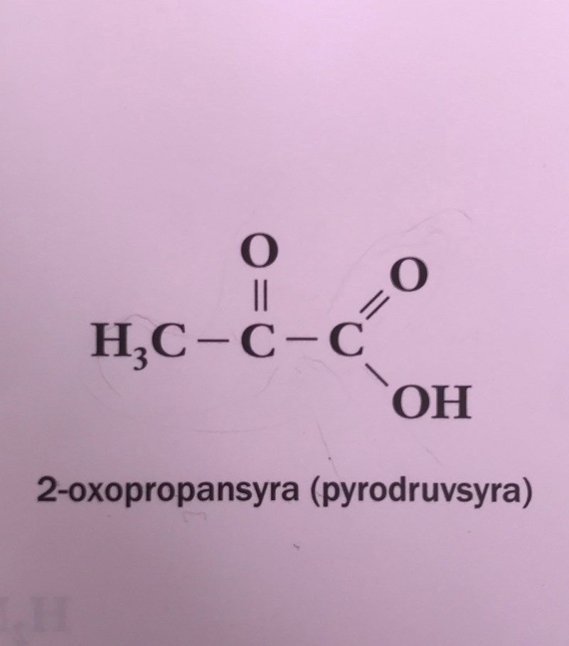 Om det mittersta kolet hade bundit till två väteatomer hade det varit "vanlig" propansyra, eller hur? Nu tänker man sig att de båda väteatomerna på kol nummer 2 är substituerade mot ett dubbelbundet syre, därför 2-oxo.