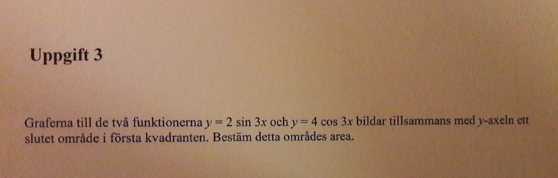 Uppgiften är att bestämma ett områdes area som två grafer bildar