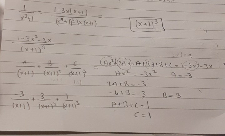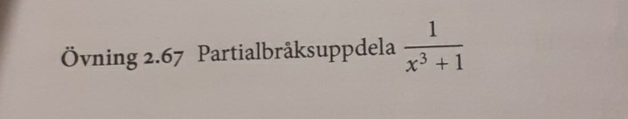 MathematicsDEF skrev:Det finns en formel för summan av två kubiker: så (x^3+1) kan skrivas som (x+1)(x^2-x+1) och nu kan man genomföra partialbråksuppdelningen väldigt enkelt.