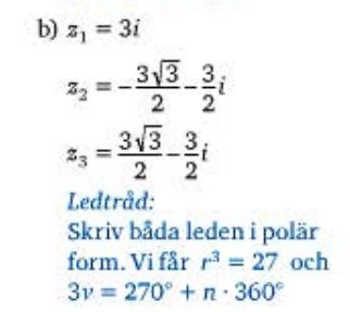 om jag ger exempel på ex b) så får jag att z1 = 3i vilket inte var svårt, men sedan säger facit så här: