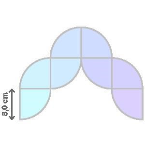 Jag satte ihop de åtta cirkelbågarna så att de blev två cirklar. Efter som att man redan vet att den den raka delen på cirkelbågen är 5 cm så kan man räkna ut diametern på cirklarna.
