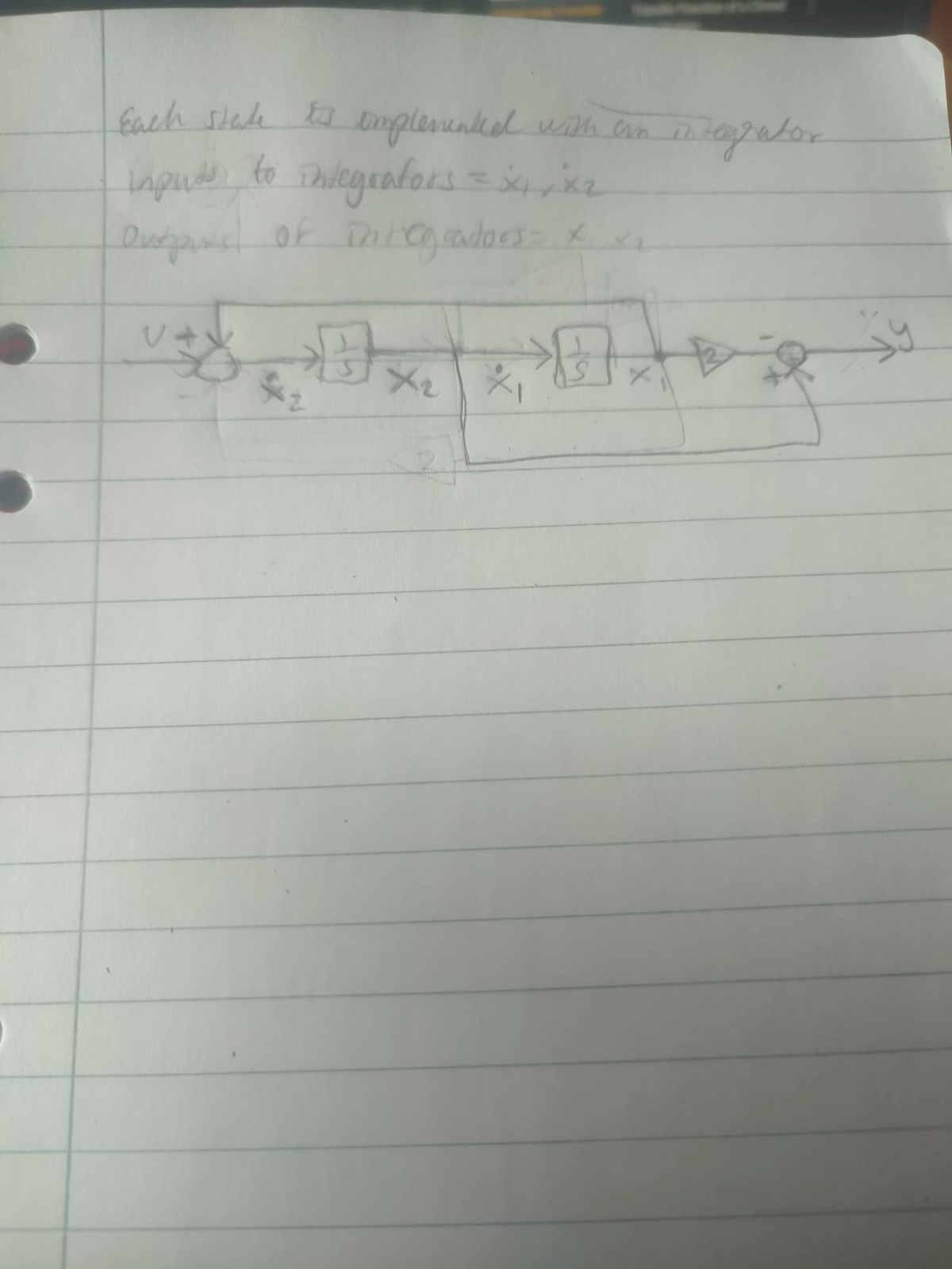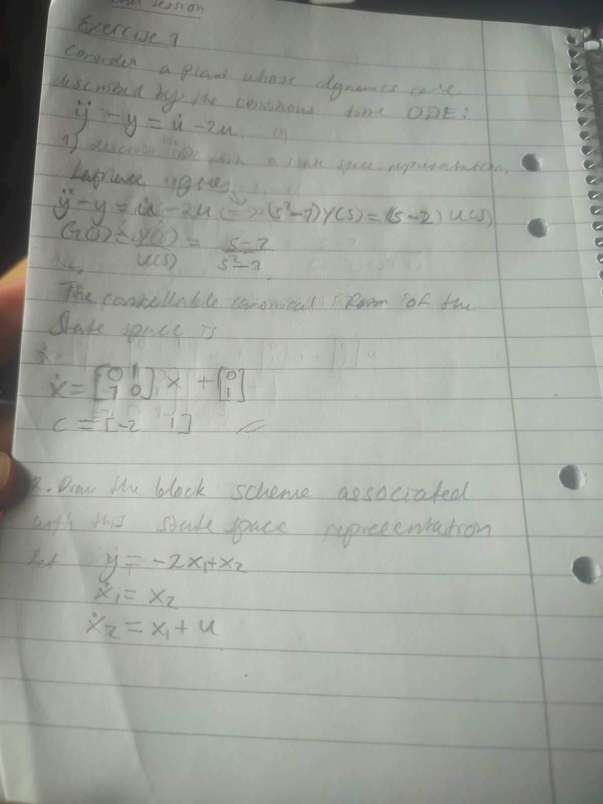 Automatic control, describe ODE with state space, draw block scheme