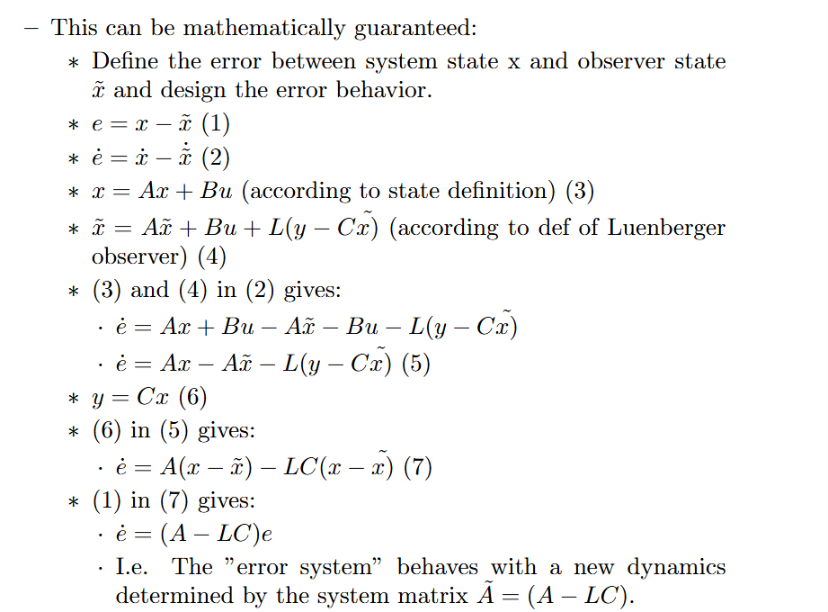 Hej! Jag funderar på om jag skrivit fel i mina anteckningar när jag skrev ned hur man kan ta fram error dynamics när man använder en observer.