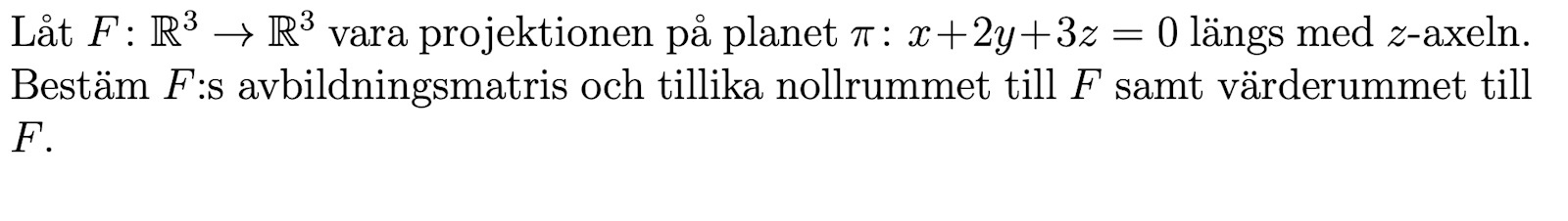 Har försökt lösa denna på olika sätt utan framgång. Tänkte att jag sätter (x1,x2,x3)+t(1,2,3) = (x1+t, x2+2t, x3+3t) och sätter tillbaka i ekvationen pi ovan så blir detta