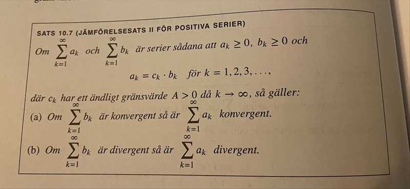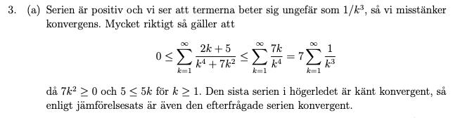 så borde det räcka för att säga att även k=12k+5k4+7k2,  är konvergent enligt Jämförelsesats för positiva serier? (Vilken den ju också är enligt facit).