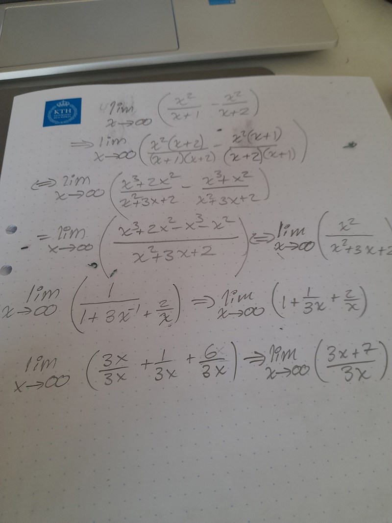 1/(1 + 3/x + 2/[x^2]), dvs , för att du faktoriserar x^2 från både täljaren och nämnaren.
