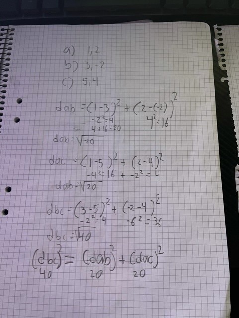Om jag gjort rätt ska denna uträkning bevisa att triangeln är rätvinklig. Men vet inte riktigt hur jag ska ta mig vidare därifrån, finns de något tips?