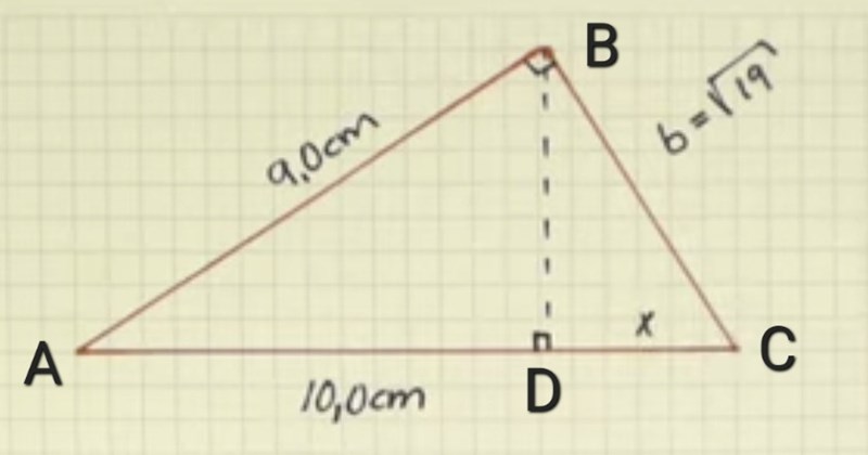 Den lilla triangeln har hörnen B, C och D, där den räta vinkeln är vid hörn D.