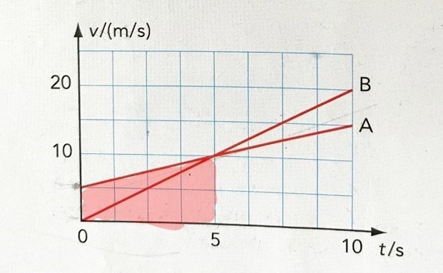 Förstår inte hur jag ska räkna ut uppgift b och c. Tänkte att B skulle vara först vid tidpunkt 5,0s då den har mest acceleration, men facit säger att bil A är först vid tidpunkten 5 sek.