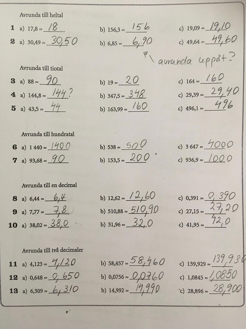 Uppgift 1 vill att du avrundar till närmaste heltal; decimaltalet 19.10 är inte ett heltal. Talen 19 och 20 är heltal.