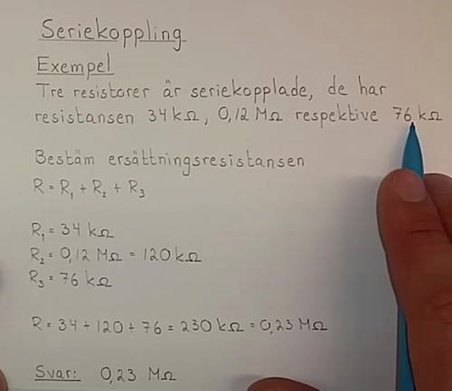 T.ex. denna uppgiften från youtube om seriekoppling. Varför avrundar ham till 0,23 m Ohm? 230 k ohm känns jo ut som et bättre tal.