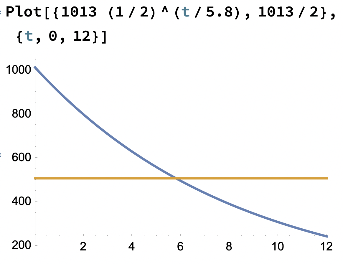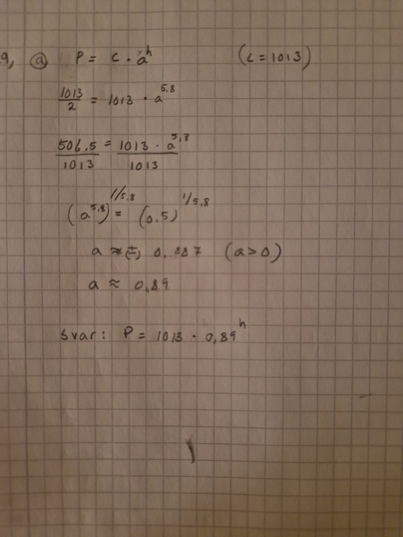 säger mer än 1013*0.89^t, men det är en smaksak. Jag kan t.ex. säga vad halveringstiden är direkt och att vid 2*5.8=11.6 så återstår 1/4 av 1013 etc.