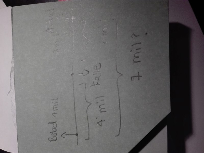 Kalle bor 3 min från Astad och 4 mil frpn Bstad. Hur långt är det från Astad till Bstad?