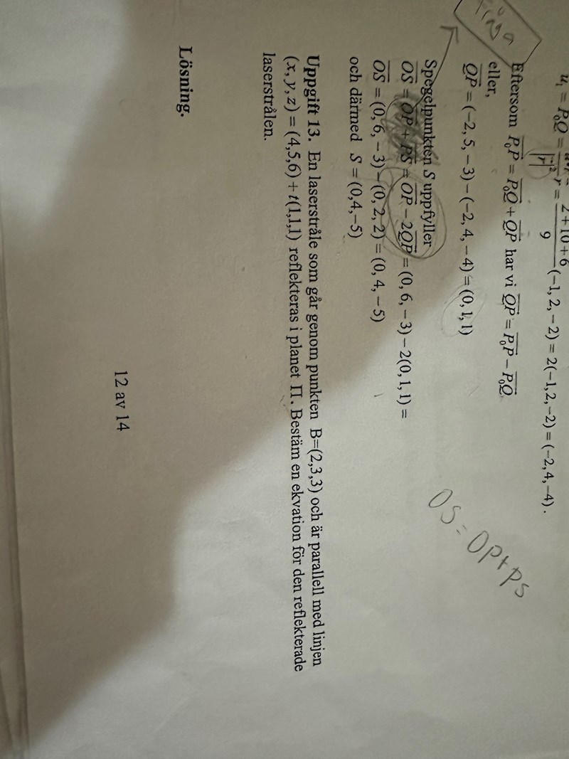 Hej kan någon se ifall jag har rätt SVT för facit säger samma sak som mig men ritningsvektorn blir inte genom tre utan (-1,-1,-5) varför blir den så?fråga13