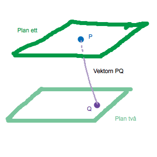 Normalvektorn till plan två, tillsammans med PQ ser ut såhär: